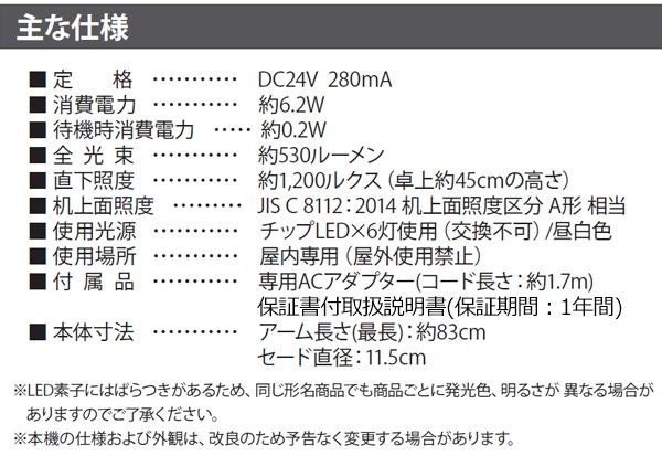 | サイズ | アーム長さ(最長):約83cm、セード:直径11.5cm 個装サイズ:21×55×11cm |