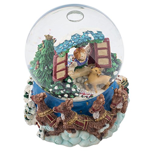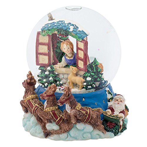 (Cadona International, Inc)/Furniture Decor/Home Decor/DIRECT FROM USA/Flying Reindeer Night Before Christmas Music Water Globe Plays Tune Santa Claus is Coming to Town