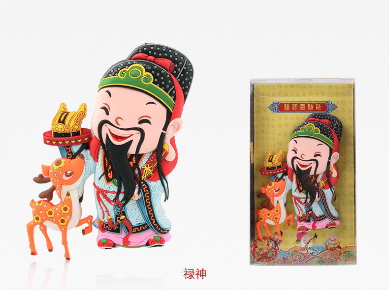 禄神为官职禄位之神,民间常有“加官进禄”、“福禄寿”等说法,常使用谐音暗示,如禄官手捧官帽,手抚梅花鹿暗指“加官进禄”之意。