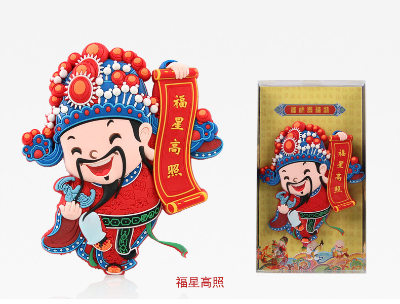 天官被称为福神,一身朝官装束,红色袍服,龙绣玉带,手执大如意,足蹬朝靴,慈眉善目,五缕长髯,一派和颜悦色,雍容华贵气象。
