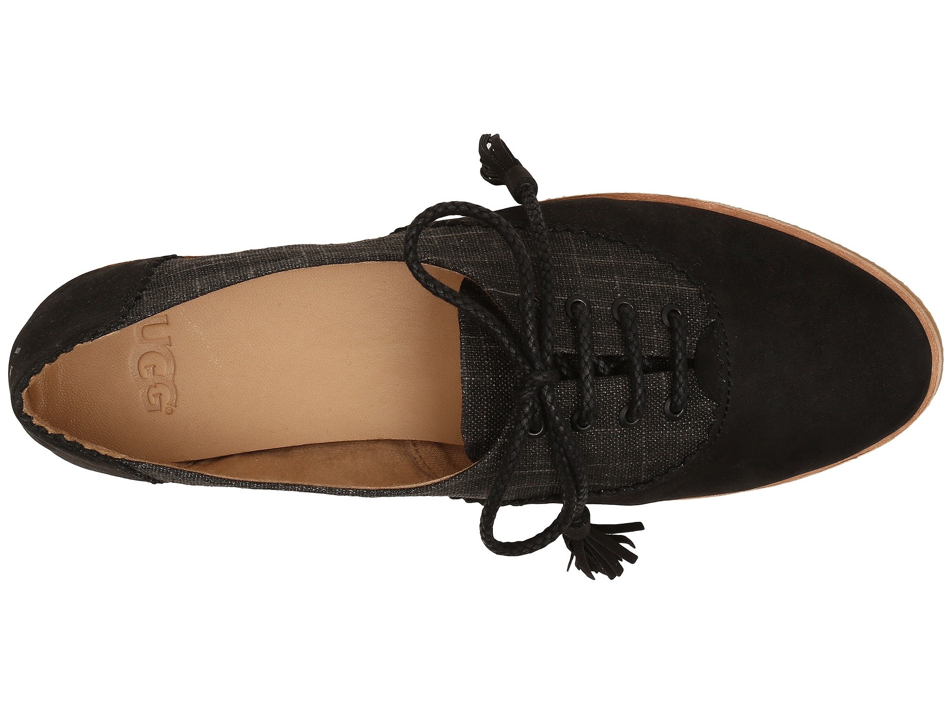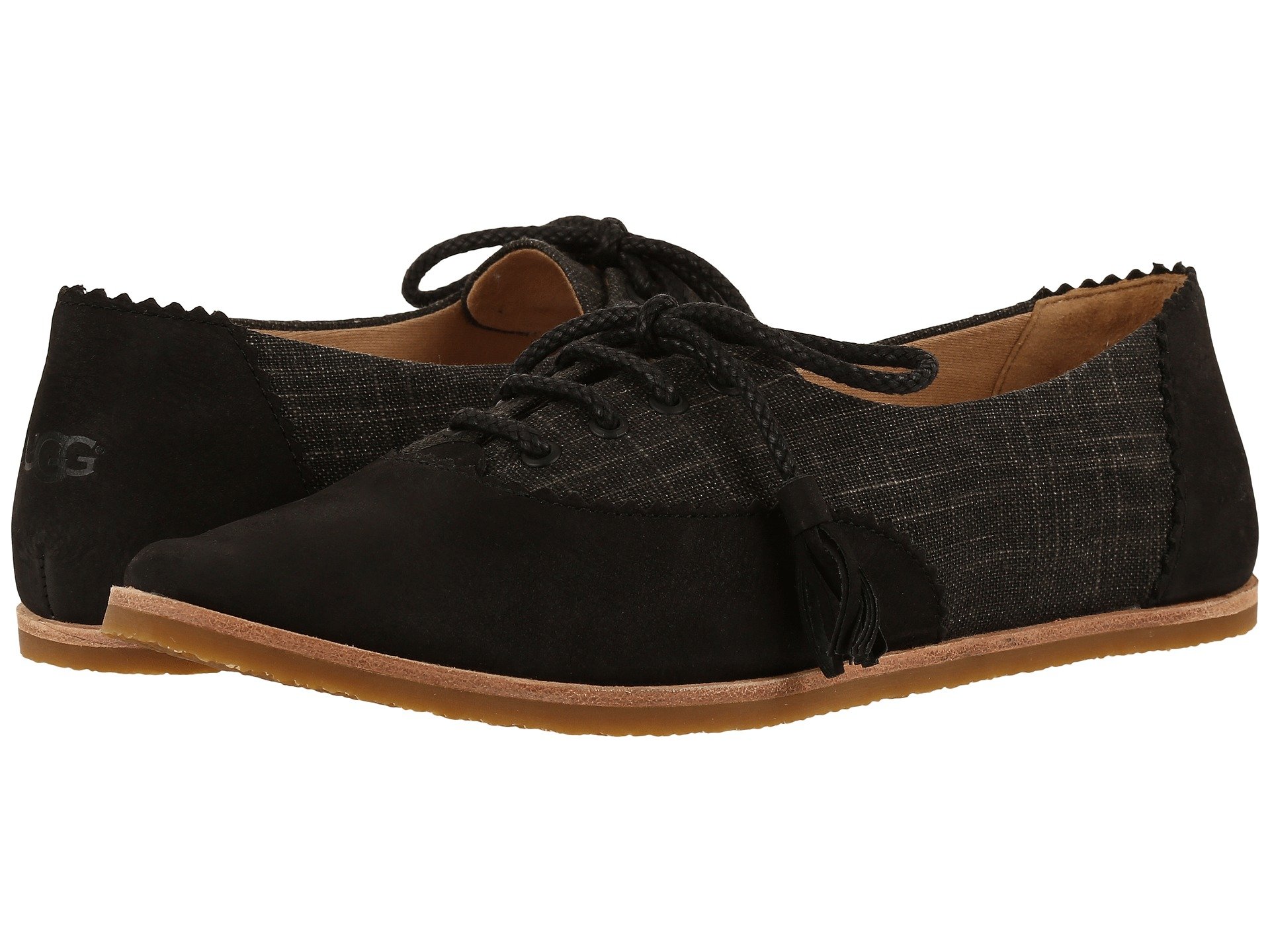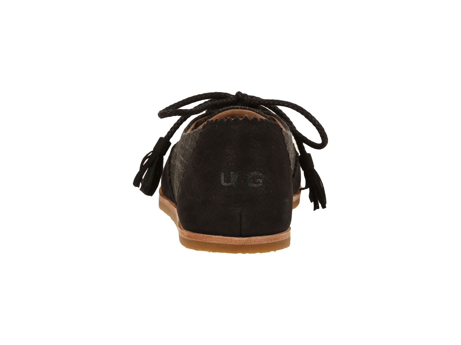 | Product Information SKU: #8808266This item is subject to quantity limitations.The streamline silhouette and beautiful detailing of the Nolita flat by UGG? will add a touch of sophistication to your look this season! Canvas and nubuck upper with decorative lacing detail at heel area.Traditional lacing system for a more secure fit.Laces features tasseled accents. Jersey and suede lining.Foam insole provides underfoot comfort.Rubber outsole.Imported.Product measurements were taken using size 7, width B - Medium. Please note that measurements may vary by size.Weight of footwear is based on a single item, not a pair.Measurements: Heel Height: 1?4 in Weight: 7 oz |
