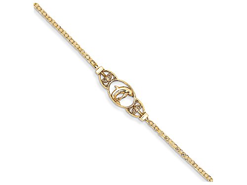 -. Title : 10 Inch 14k Polished Dolphin Anklet 14kt