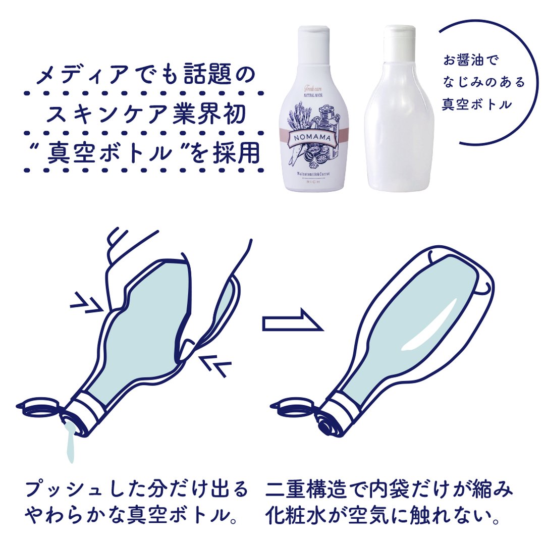 <No additive> Preservatives, mineral oils, coloring agents, synthetic perfumes, parabens, old labeling ingredients not used <Prevent oxidation> Maintain freshness by preventing oxidation and can be used fresh to the last drop.