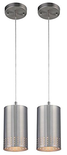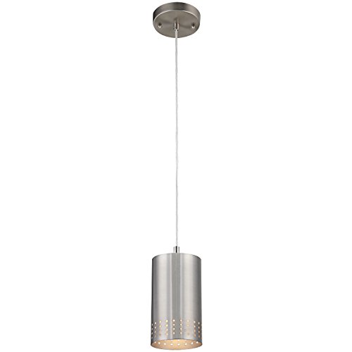 A brilliant example of contemporary aesthetics, this One-Light Adjustable Mini Pendant provides focused illumination while adding style to any decor. The cylindrical shade with its four rows of perforated pattern hangs from a slender cord and brushed nickel canopy creating a sleek contemporary fixture. Its style will complement a range of decors from transitional to modern. This pendant is ideal for lighting dining areas, kitchen islands, bedrooms, office reception areas, restaurants, hotels and shops, hang it by itself or group two or three together. It will provide welcoming light wherever you choose to hang it. Bring out the designer in you. mini pendants are a quick and easy fashion upgrade to refresh your residential or commercial decor. This adjustable fixture is 59 inches high by 5 inches in diameter and has a 50-inch maximum cord length. It uses one medium-base light bulb, 60-watt maximum (not included).Feature