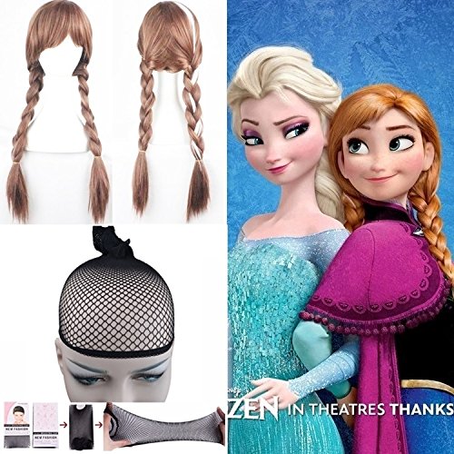Anna Wig for Frozen Costumes Play and 1 Wig Cap, Brown Double Braid Hair Cosplay Wigs for Daily /Cosplay /Party /Fun, Comfortable/Breathable/ Durable Rose Net; wig019A
