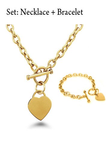 -. Title : Crazy2Shop Stainless Steel Yellow Gold Plated Elegant Heart Charm Cable Link Chain Necklace & Bracelet Set with Toggle Clasp, 18" & 7.5"