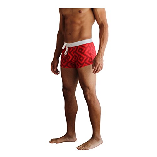 NEW! 20+ Styles - 5TH INDUSTRY Mens Swim Brief Square Leg Swimsuit - Red Key - Large