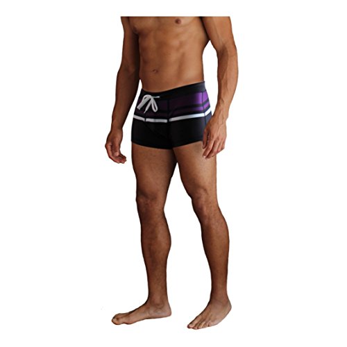 NEW! 20+ Styles - 5TH INDUSTRY Mens Swim Brief Square Leg Swimsuit - Black & Purple Racer - Medium