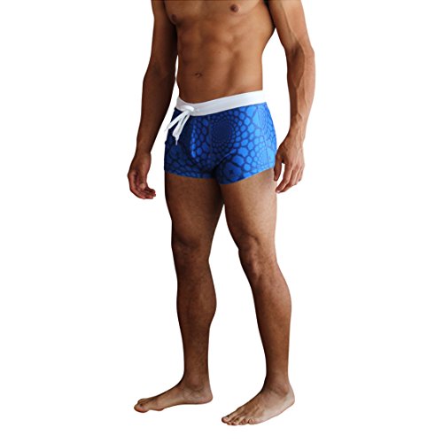 NEW! 20+ Styles - 5TH INDUSTRY Mens Swim Brief Square Leg Swimsuit - Blue Geometric - Large