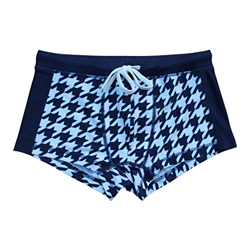 NEW! 20+ Styles - 5TH INDUSTRY Mens Swim Brief Square Leg Swimsuit - Navy & White Houndstooth - Medium