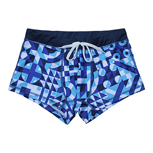 NEW! 20+ Styles - 5TH INDUSTRY Mens Swim Brief Square Leg Swimsuit - Blue Geometric - Medium