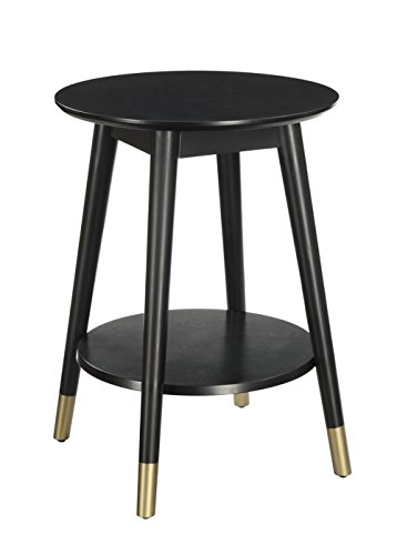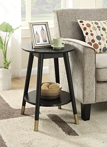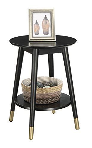 -. Title : Convenience Concepts Wilson Mid-Century Round End Table with Bottom Shelf, Black