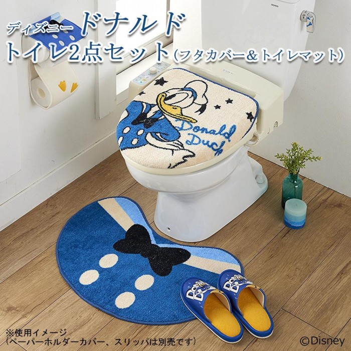 ヴィンテージ風ドナルドのかわいいトイレセットです!! トイレマットはドナルドのマリンジャケット柄、フタカバーはドナルドでお洒落♪ |