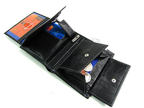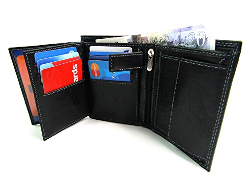 -. Binding : Apparel -. Brand : EMPORIUM LEATHER -. Department : mens -. Feature : This wallet is RFID Protected Radio Frequency Identification. Coin Pouch 8 Credit/Debit Card Holders 3 Window Sleeves for ID Cards Photo's etc Plus an additional 2 card spaces behind these should you need extra. There is a tab to keep all contents secure. There is a Zipped Compartment down the Middle of the Wallet ideal for Receipts Notes. All Fully Lined with contrasting Blue Material 2 Note Sections Wallet Measures 12cm High , 9cm Wide , 2.5cm Deep when empty. -. ProductGroup : Apparel -. ProductTypeName : ACCESSORY -. Title : The Leather Emporium Men's Wallet Credit Card Holder Box