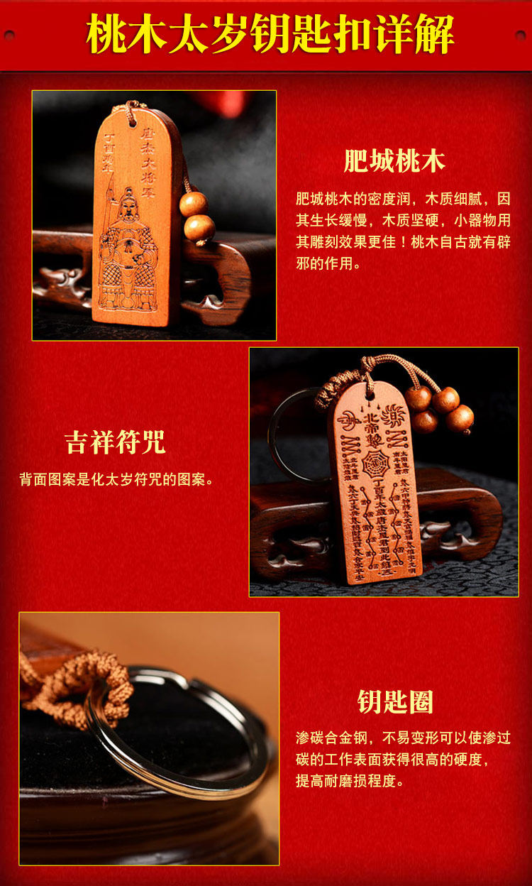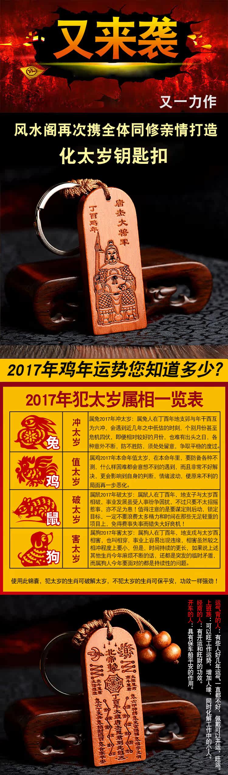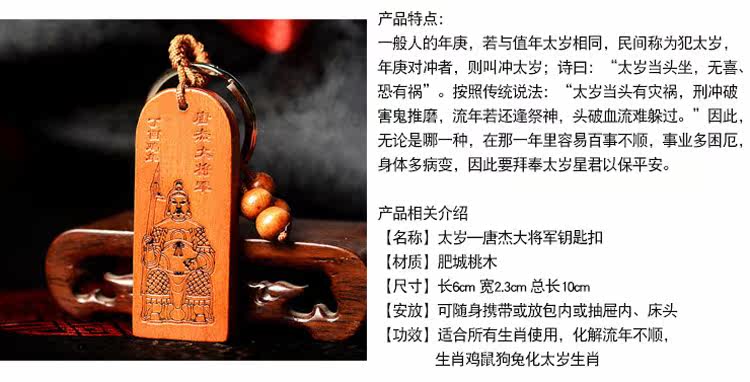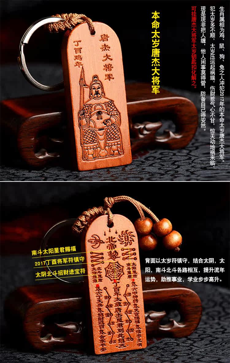 桃木唐杰将军化太岁符牌钥匙扣挂件鸡狗鼠兔犯太岁