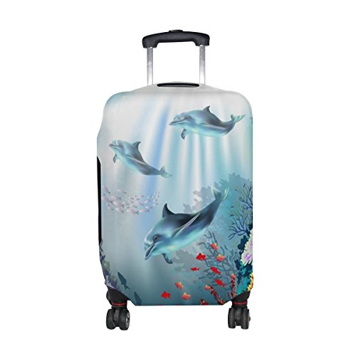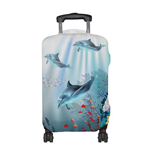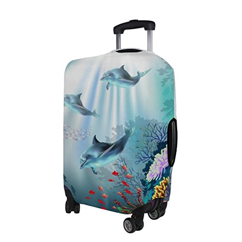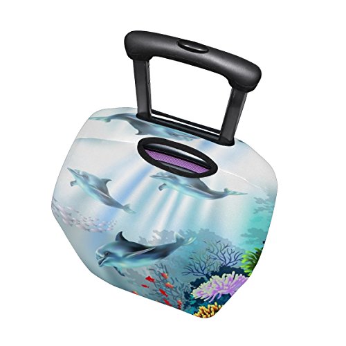 (ALAZA)/Accessories/Luggage, Bags Travel/DIRECT FROM USA/Cooper girl Coral Sea Dolphins Travel Luggage Cover Suitcase Protector Fits 23-26 Inch