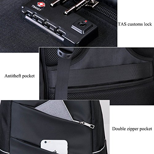 -. Brand : fenruien -. Department : mens -. Feature : Tripple antitheft:antitheft pocket behind the back protect your valuables,cus lock saves you trouble when passing security.wirerope keeps your backpack's safety. / Waterproof fabrics:pc coating film raw material is water repellent.at the same time,it is very convenient to clean. / human mechanics theory design:Mesh back carry system alleviates your burdens and is very breathable. / Padded foam shoulder strap:contain 2 small zipper pocket to hold things,such as card and charge cable etc. / Roomy compartment:include 1 main pocket&1 15.6'' computer compartment&tablet compartment&mesh pocket&card pocket&1 big zipper pocket inside,2 big zipper pocket in the front of the backpack&1 zipper pocket and 1 open pocket in the each side of backpack. -. PackageQuantity : 1 -. ProductGroup : Apparel -. ProductTypeName : LAGE -. Size : 11.81in x 5.12in x 18.11in -. Title : FRN Business Tripple Anti-theft Multifunction Backpack Bag Men with USB Charging