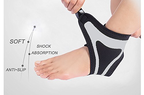 -. Feature : Flake adjustable sports pressurized ankle- Protects against chronic ankle sprains, and fatigue. minimum the risk of injury especially during the strenuous activities, also helps to relieve edema and symp associated with acute injuries, which is excellent for sprains, tendonitis and arthritis. / Anti Odor & Anti Itch - Made of high-elastic material. Interlayer with perforation design allows oxygen circulation to eliminate odor and prevent bacteria from breeding. Keep your feet dry and cool. / Reasonable Design - Open heel design allows wide range of motion during activity, but still provide support for the ankle tendons and joints. One piece design, easier to wear and take off. / Multi-use-Ankle supports are great for any activity requiring ankle movement, including Running, Basketball,walking, Hiking, Baseball,Tennis and Volleyball. You'll be able to enjoy exceptional ankle support while still maintaining your peak performance and full range of leg motion! / Free Size- fits most feet and it distinguish between left and right feet.Our ankle brace comes with adjustable straps, which allow to meet different requirements and ankle diameters. 1 piece inclueded.