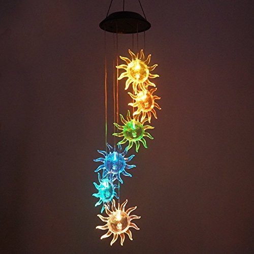 Sunflower Color Changing Solar Light Wind Chimes, Multi-color solar mobile Wind Spinner outdoor garden pation yard garland decoration
