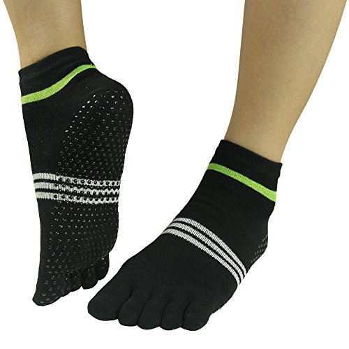 -. Feature : Ergonomically designed GRIPS ON BOT: To ensure maximum Non-slip support for secure workouts, or walking safely around the house. Also perfect for yoga, pilates, dance, Ballet Barre, Tai Chi, Aikido, Karate, martial arts, home, travel, studio Jujitsu&as hospital socks / COTTON YOGA TOE SOCKs for WOMEN and MEN: Five full toe design for barefoot feel, stop exposing your toes to foot fungus on dirty studio or gym floors, to ensure each toe is individually covered and protected. Designed specially for yoga and pilates. Socks can be used with a mat for added grip. Socks are great for any type of exercise where you need grippers on the toes / NON SLIP YOGA SOCKS: Avoid injuries, give you better control of your body movements to avoid injuries, featured black environmental non slip dots on the bottom of the sock, help you better on the floor or mat security balance, as well as the function of the foot warm / a great VALUE BUDGET: Multipairs socks with great P.R.Ice, what a bargain! Supersoft&fitness give you wonderful feeling / PERFECT FIT&STRETCHY: Our J'color non slip cotton yoga socks are comfortable and breathable.One size fits most and this is a no-risk purchase; Cotton fabric, soft, elastic, dri fit