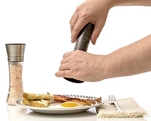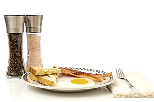 WHEN QUALITY MEETS QUANTITY: The Salt and Pepper Shakers Set we provide is tall enough to fill with pepper and salt, and keep it at least for a few months. Its well made ceramic rotor is not going to fail you! Neither the thick glass, nor the stainless steel top will. Strong and sturdy this device is here to last and give a fine elegant touch in your kitchen and your table.