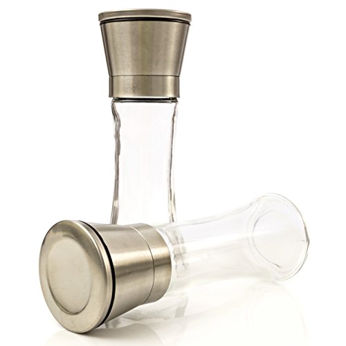 Salt And Pepper Grinder Set – A Dual Set Of Combo Grinders For Salt & Pepper Made Of Thick Glass Combined With Stainless Steel Top – Salt & Pepper Mill Pair , Salt And Pepper Shakers