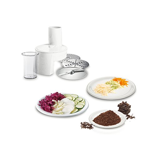 -. Feature : Einfach und sicher zu bedienen (Bosch Technik); leicht zu reinigen (Spülmaschinen geeignetes Zubehör) / Praktischer Alleskönner mit großer Rührschüssel aus Edelstahl (3,9l, max. Teigmenge 2,0 kg) / Vielseitig einsetzbar mit Patisserie-Set (Schlagbesen, Rührbesen, Knethaken) und Durchlaufschnitzler mit 3 Scheiben zum Raspeln, Reiben und Schneiden / Dynamisches 3-D Rührsystem MultiMotion Drive für optimales Vermengen der Zutaten / Individuell erweiterbar mit einer Vielzahl an hochwertigem Zubehör sofern noch nicht im Lieferumfang enthalten z.B. Eisbereiter, Getreidemühle, Multimixer, SP.R.Itzgebäckvorsatz, Fleischwolf, Mixer, u.v.m.
