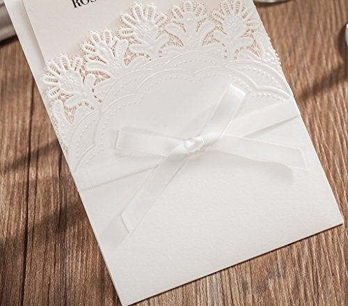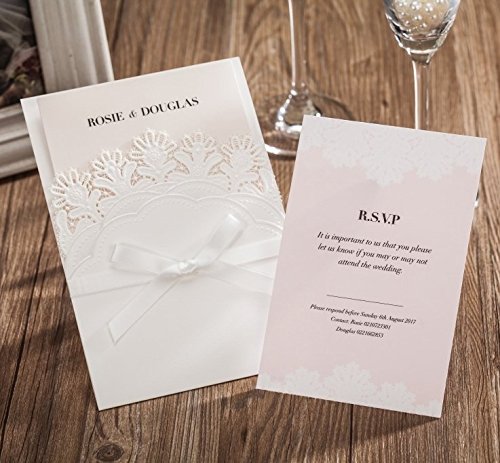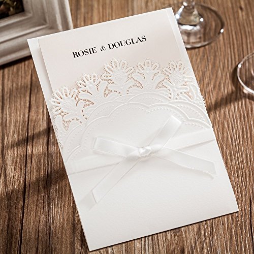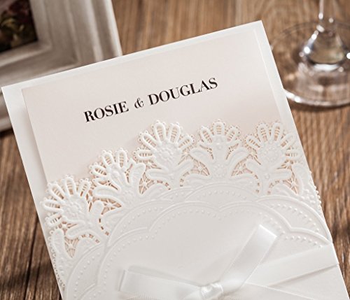 Wishmade White Pocket Laser Cut Invitations With RSVP Card Party Favors For Wedding Birthday Engagement Graduations Baby Shower CW6083