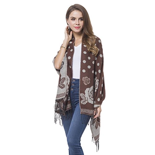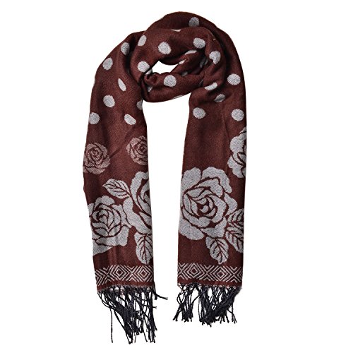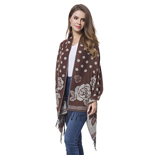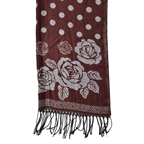 Product Description This dark brown and white rose and polka dot pattern 60% acrylic and 40% polyester reversible shawl is what you need to up your style quotient. Wear it to the office or take it to market. You will never go wrong with your choice. 0