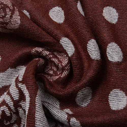 (Shop LC)/Accessories/Cold Weather Accessories/DIRECT FROM USA/Brown and White Rose and Polka Dot Pattern 60% Acrylic and 40% Polyester Reversible Shawl with ...