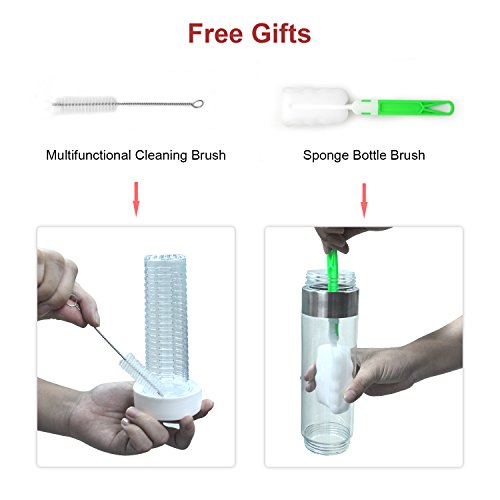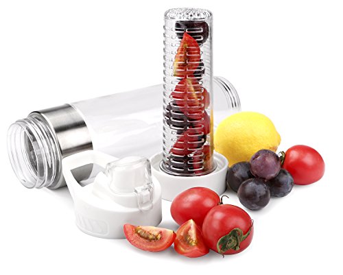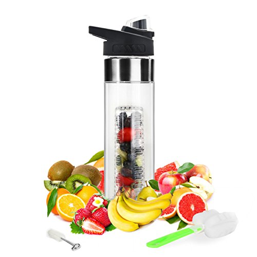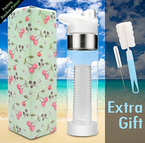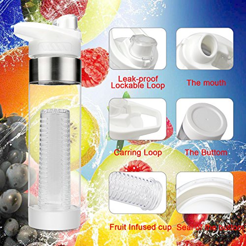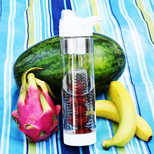 REMOVABLE INFUSER OF THE WATER BOTTLE- Inclusive Inner Infuser/ Filter - Keep your fruit / Ice in your bottle without clogging your large drinking spout.you can remove the infuser easily, so it can be as a sports bottle if desired.The stainless steel ring and carrying handle make it perfect for your home, kitchen, bike,camping,outdoor and sports activities, and work.