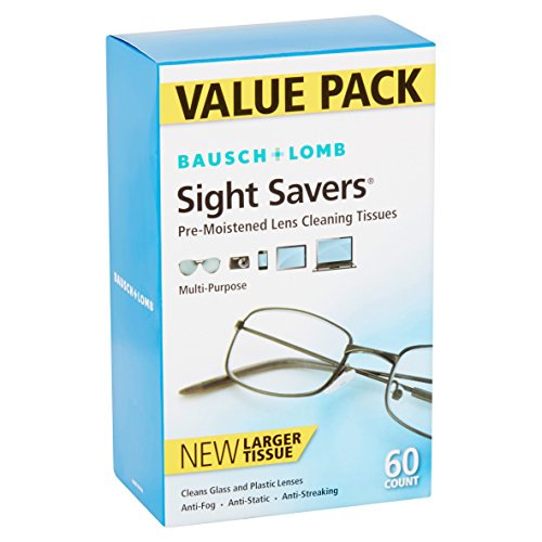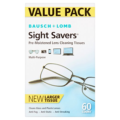 Studio : Bausch Lomb Publisher : Bausch Lomb Binding : Health and Beauty Product Description These Bausch Lomb Sight Savers Pre-Moistened Lens Cleaning Tissues are ideal for wiping glass and plastic lenses without causing fog or static or leaving behind streaks. You can also use them for cameras, phones, tablets, laptops and TVs. They are multi-purpose and come in a convenient, large 5" x 6" size. These lens tissues include 60 sheets. They are biodegradable. Bausch Lomb Sight Savers Pre-Moistened Lens Cleaning Tissues: Multi-purpose Clean glass and plastic lenses Anti-fog, anti-static and anti-streaking Large 5" x 6" size Biodegradable Value pack includes 60 lens cleaning wipes 0