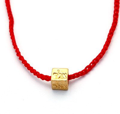 -. Feature : Beautiful cube amulet engraved with Kabbalah letters for protection and success / The Kabbalistic letter combination ALD is used for protection from the envious eyes of others / The Kabbalah pendant is 24K Gold plated / The necklace is hand knitted wax wire in red / The Kabbalah necklace is 15.5" for kids