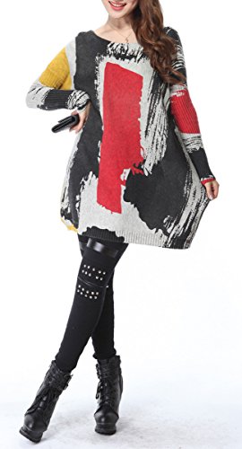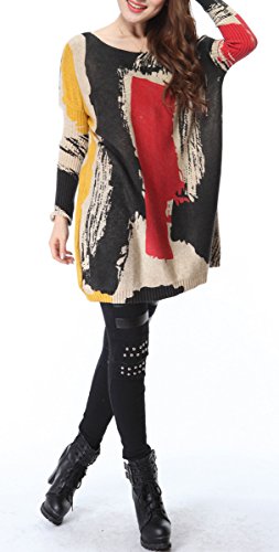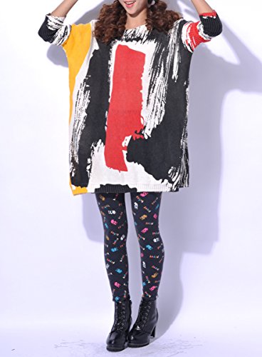 -. Title : ELLAZHU Women Baggy Doodles Print Knit Pullover Dress Onesize SZ45