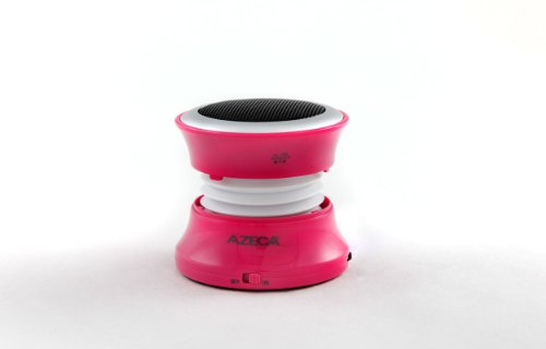 The Azeca 3 Watt Bluetooth Pop-Up Speaker packs a punch with sound quality that is far superior to many competitive 3 watt pop-up speakers.  The Azeca "Yo-Yo" design gives our speaker a parabolic shape for better sound quality.  Connect via Bluetooth or with the included line-in cable.  Less than 1.8 inches high when collapsed our speaker easily fits into a coat pocket for easy portability.  The internal 500 mAh lithium ion rechargeable battery provides 5 to 9 hours of play time (depending on volume) from one charge. Independent volume control. Charges up in about 3 hours. Rubberized foot. Red/Blue glow charging indicators. Includes USB mini charging cable, line-in cable, and carry bag. Model BT15S - Black, White, Aqua, Hot Pink