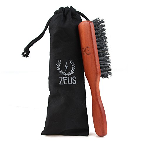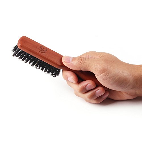 Zeus Pear Wood 100% Boar Bristle - Medium Beard Brush with Handle - Made in Germany