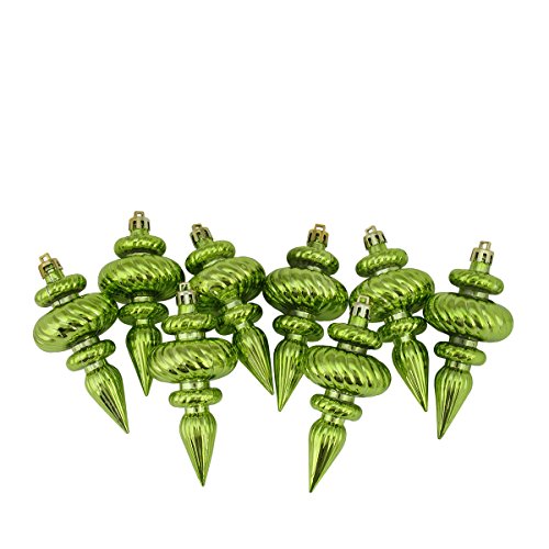 Northlight 8 Count Shiny Kiwi Green Swirl Shatterproof Christmas Finial Ornaments, 4.25"