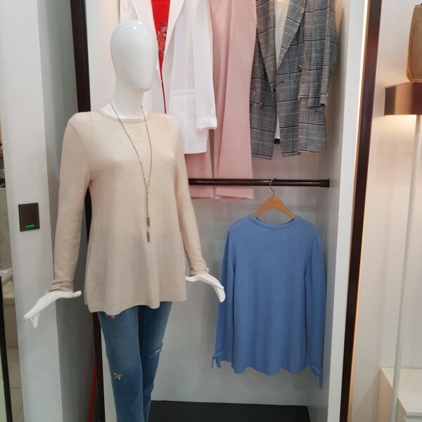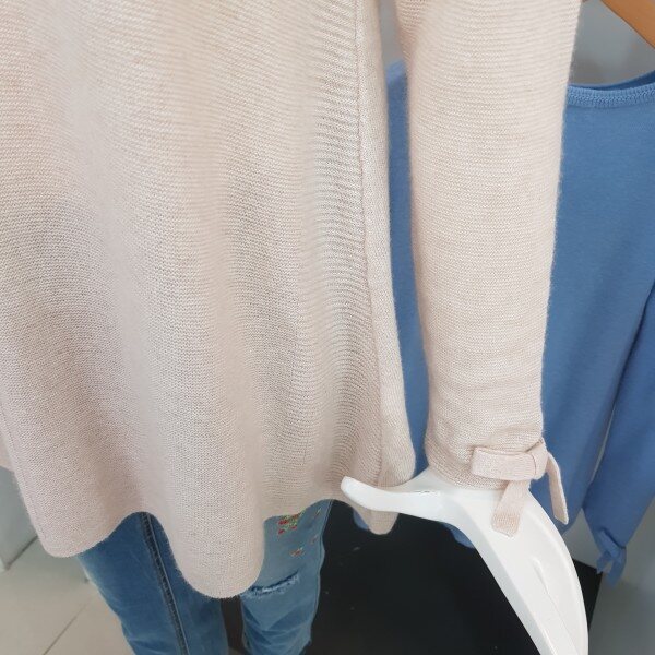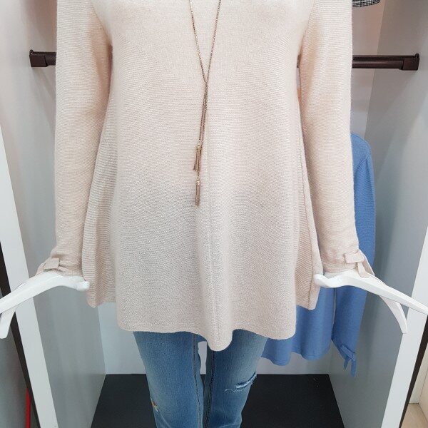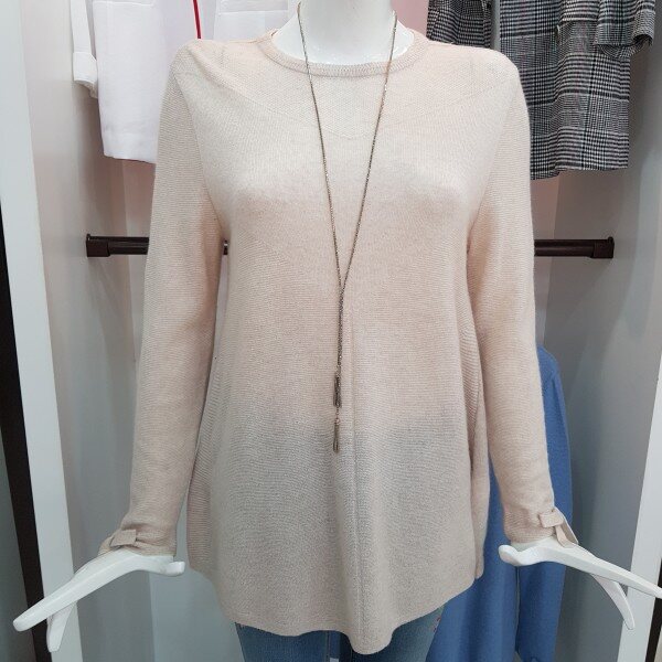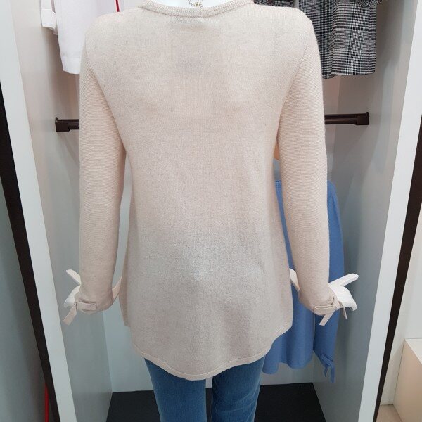 소매에 리본장식 있고 A라인으로 된캐시미어 혼방 고급 소재의 니트봄가을추천