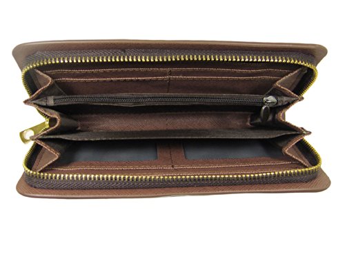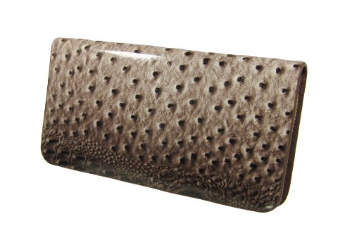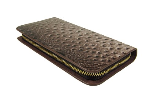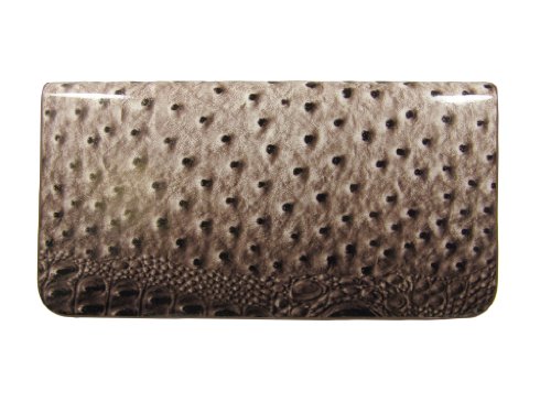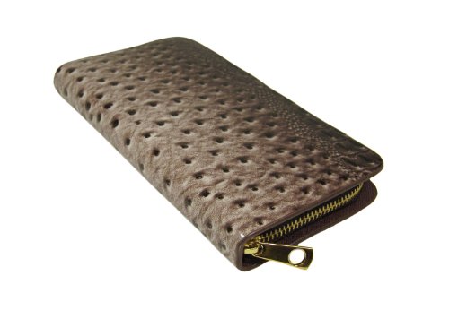 This adorable patent leather zip around wallet is perfect for all your needs.    It is made of smooth, non textured patent leather (smooth plastic with an animal print pictured on it).  It has multiple compartments for cash, credit cards, a picture and ID.