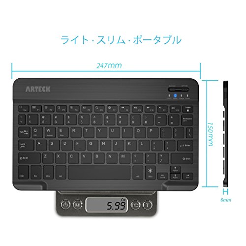 6カ月間のバッテリー寿命:大容量を備えた充電式リチウムイオン電池は、一度チャージすれば6カ月間持ちます (1日あたり2時間の連続使用、バックライトオフの状態による) | キーボードが七色バックライトあります。七色と二つ明度からお好きな色を調節可能です。 | パッケジ内容: - 1 x Arteck Bluetooth キーボード - 1 x USBケーブル - 1 x 日本語取扱説明書 (お問合せ:日本語対応) |