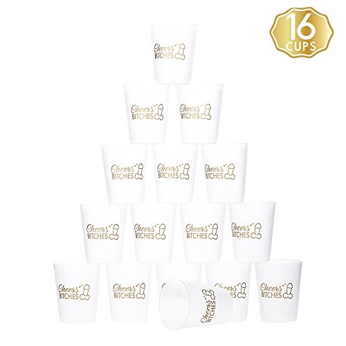 Studio : MISS FANTASY Publisher : MISS FANTASY Binding : Health and Beauty Product Description Are you looking for the perfect addition to you bachelorette party? Grab this pack of super cute and stylish cups with Deep Metallic Gold Print texts "Cheers BITCHES" . A must have drink favors to celebrate friendship, graduation, engagement, promotion in simple yet grand style. The set includes 16 16oz BPA-free Frost Flex plastic cups to make the big hit with your friends at the next bachelorette party while you all catch the best of fun serving their favorite drinks. Why Choose Our Bridal party cups for your occasion? Each cups measure 16 oz, which is just the right size for any of your favorite drinks. Celebrate with style and make you feel more united while at the same time catching the best of fun. Super cute and personalized cups for the bride and her besties with a gold print. Party tested and durable to filled the occasion with fun all through the day. Package Includes 1 X 16 cups 0