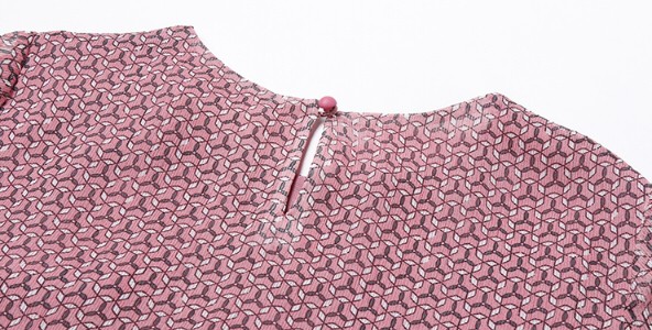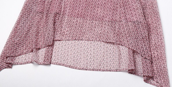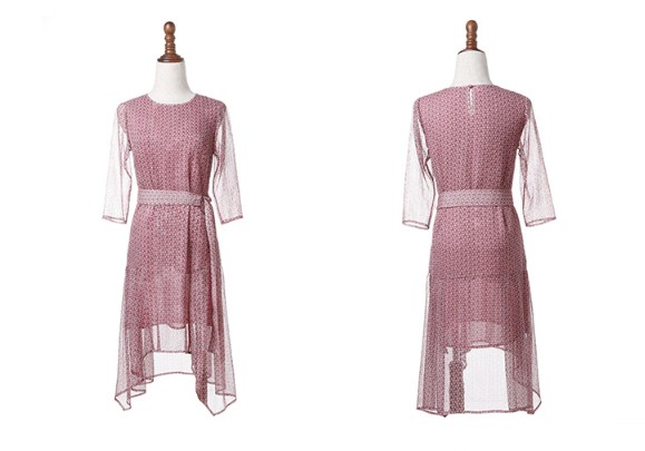 スリム レースプリント シフォンドレス 七分袖 Aラインワンピース