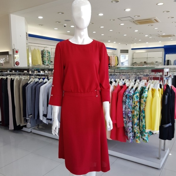 나팔소매 디테일의 A라인 칠부소매 원피스-JA7F8-WOP010-레드
