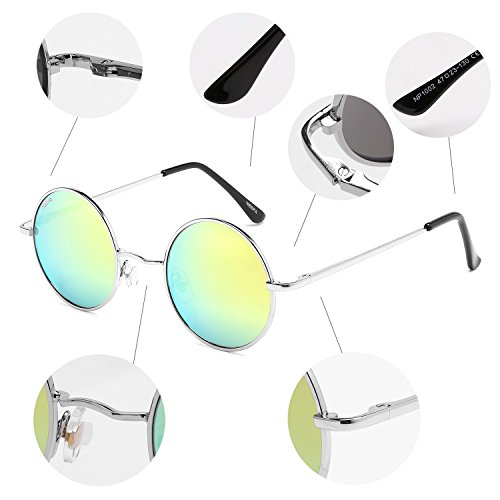 -. Feature : Metal frame Polarized lens Lens width:45mm Len height:45mm / UV400 PROTECTION:Polycarbonate round lens 100% Blocks Harmful UVA,UVB & UVC Rays,Is indispensable when you go out or travel / HIGHT-QUALITY MATERIALS: mirror legs and borders are made of high-quality metal material, the lens for the polycarbonate, round Lennon style for the classic and the perfect combination of fashion / SUITABLR FOR: the light weight disign is the best choise for Driving, Running, Racing, Boating, Fishing, Skiing and Climbing, Trekking,Outdoor Hiking or Other activities enthusiasts / QUALITY ASSURANCE:assurance: we will carefully check the product quality before shipment, if any problems, we will solve the problem in first time until you satisfaction