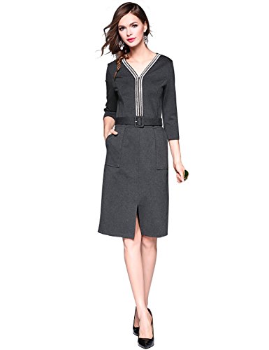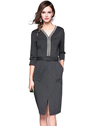 Women's V-Neck Wear to Work Pencil Dresses for Women Work with Belt Pockets Dress Specification: Color:Gray Material: 95% Cotton, 5% Spandex. Dresses for Women Work, Sparkle v neck, 3/4 sleeve, back zipper, pencil dress with two pockets. Suit for church, work, evening dinner, business, formal, cocktail, party, day & night and all seasons. S fits US(4-6) Shoulder:14.57"/37cm, Bust:35.04"/89cm, Waist:27.17"/69cm, Hip:37.40"/95cm, Sleeve Length:16.54"/42cm, Total Length 39.37"/100cm M fits US(8-10) Shoulder:14.96"/38cm, Bust:37.01"/94cm, Waist:29.13"/74cm, Hip:39.37"/100cm, Sleeve Length:16.93"/43cm, Total Length 39.76"/101cm L fits US(12-14) Shoulder:15.35"/39cm, Bust:39.76"/101cm, Waist:31.89"/81cm, Hip:42.52"/108cm, Sleeve Length:17.32"/44cm, Total Length 40.16"/102cm XL fits US(16-18) Shoulder:15.75"/40cm, Bust:42.91"/109cm, Waist:35.04"/89cm, Hip:45.67"/116cm, Sleeve Length:17.72"/45cm, Total Length 40.55"/103cm 4 fits US(4) Shoulder:14.57"/37cm, Bust:33.85"/86cm, Waist:27.17"/69cm, Hip:37.00"/94cm, Sleeve Length:16"/41cm, Total Length 38.97"/99cm 8 fits US(8) Shoulder:14.96"/38cm, Bust:36.22"/92cm, Waist:29.52"/75cm, Hip:39.37"/100cm, Sleeve Length:16.53"/42cm, Total Length 39.37"/100cm 12 fits US(12) Shoulder:15.35"/39cm, Bust:37.79"/96cm, Waist:32.28"/82cm, Hip:41.73"/106cm, Sleeve Length:16.92"/43cm, Total Length 39.76"/101cm 16 fits US(16) Shoulder:15.75"/40cm, Bust:40.94"/104cm, Waist:34.64"/88cm, Hip:45.67"/116cm, Sleeve Length:17.32"/44cm, Total Length 40.16"/102cm Notes: 1. The actual color of item may vary slightly from the picture as different devices display differently. 2. Please allow 1.0" differs due to manual measurement,thanks.Feature