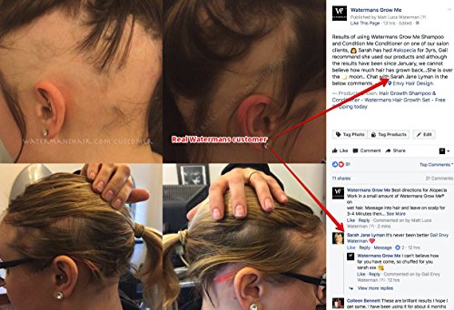 We have real results, please see other photos for proof Every before and after photo can lead to the original source. Search: Facebook Watermans Grow MeOur exclusively designed unisex hair growth shampoo and conditioner have been scientifically formulated using Watermans GrowMoreTM technology.