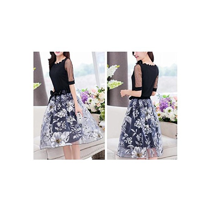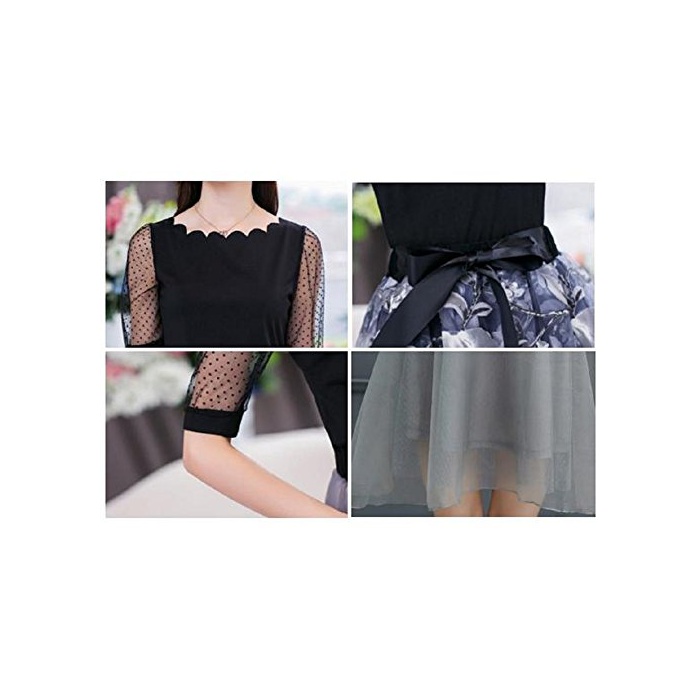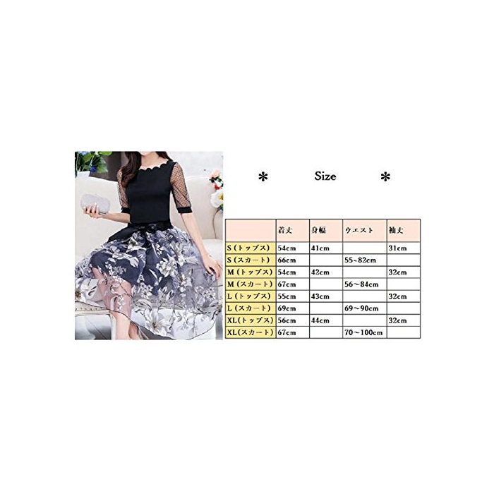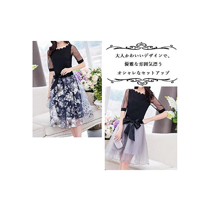 【컬러】꽃무늬 블랙,무지 그레이 【사이즈】S,M,L,XL (M(톱스)옷 길이54cm,옷길이42cm,소매 길이32cm,(스커트)옷 길이67cm,웨스트56~84cm) 【소재】폴리에스텔