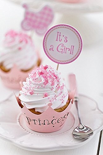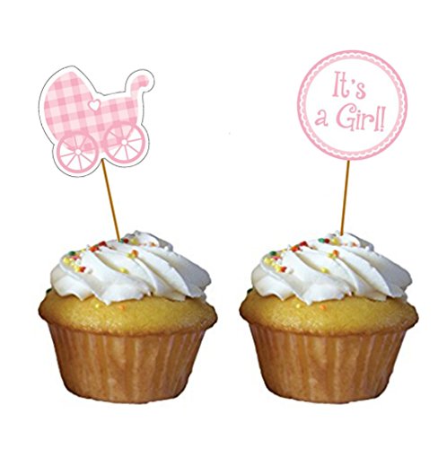 PARTYMASTER Baby Shower Party Decorations Lot of 24PCS Food Toothpicks Cupcake ToppersCupcake Picks,Mixed Packaging,Girl