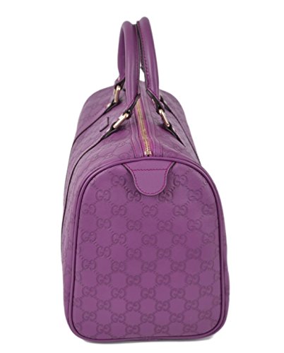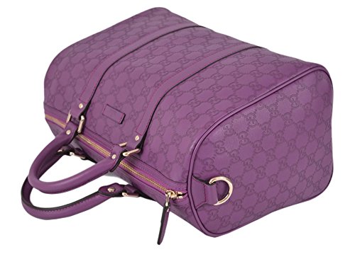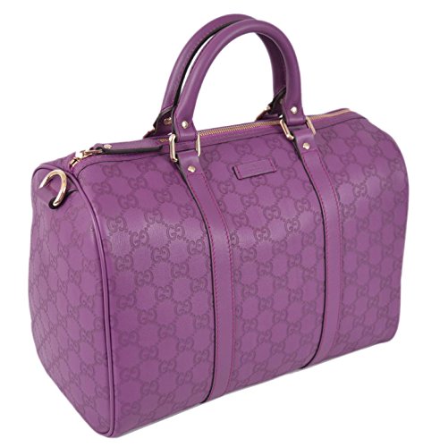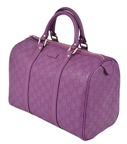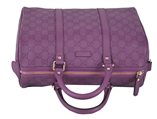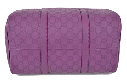 Gucci's Signature GG Pattern Embossed on Beautiful Violet Purple Leather "Gucci" Leather Tab on Front of Bag Flat Bottom...Sits Perfectly D Ring Hardware Accent "Gucci" Engraved Hardware Dual Leather Handles with a 4" Drop Top Zip Close Lined in Brown Canvas Interior "Gucci" Leather Tab Interior Serial Number Gucci Dust Bag Made in Italy Condition: New with Tags What is Included: Bag, Tags, Dust Bag and Controllato Card Color: VioletFeature