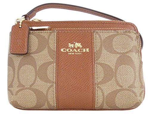 -. Title : Coach Signature Canvas Leather Double Zip Wristlet